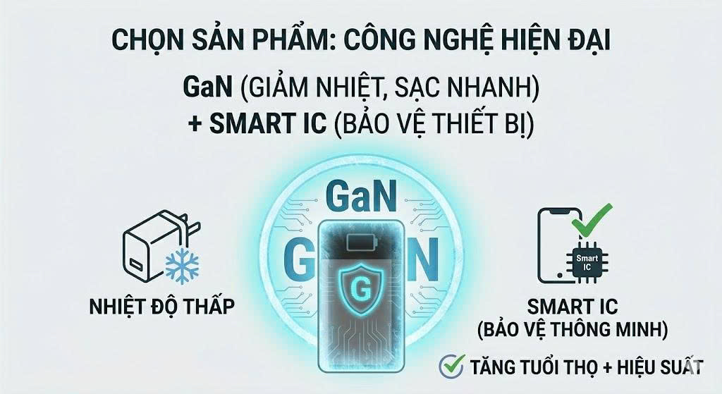 Chọn sản phẩm có công nghệ hiện đại (GaN, tự ngắt)