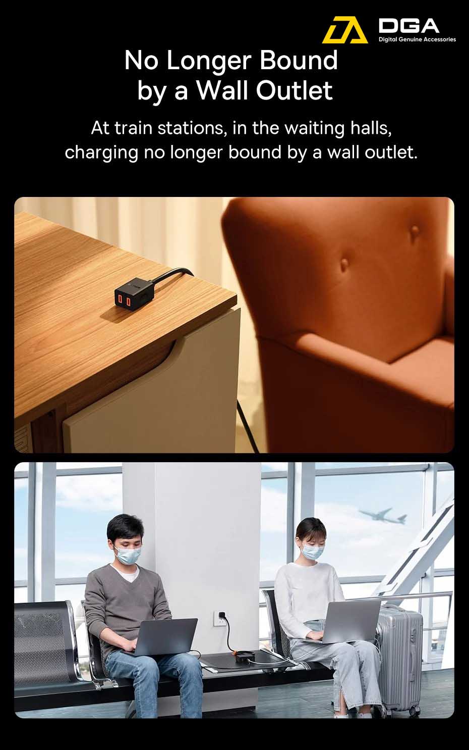- Tại các ga tàu, trong sảnh chờ, việc sạc pin dễ dàng với các ổ cắm trên tường. Không chỉ là phần mở rộng cho phạm vi sạc của bạn mà còn là mở rộng cho nhiều loại sạc, sạc nhanh cho máy tính bảng và điện thoại của bạn