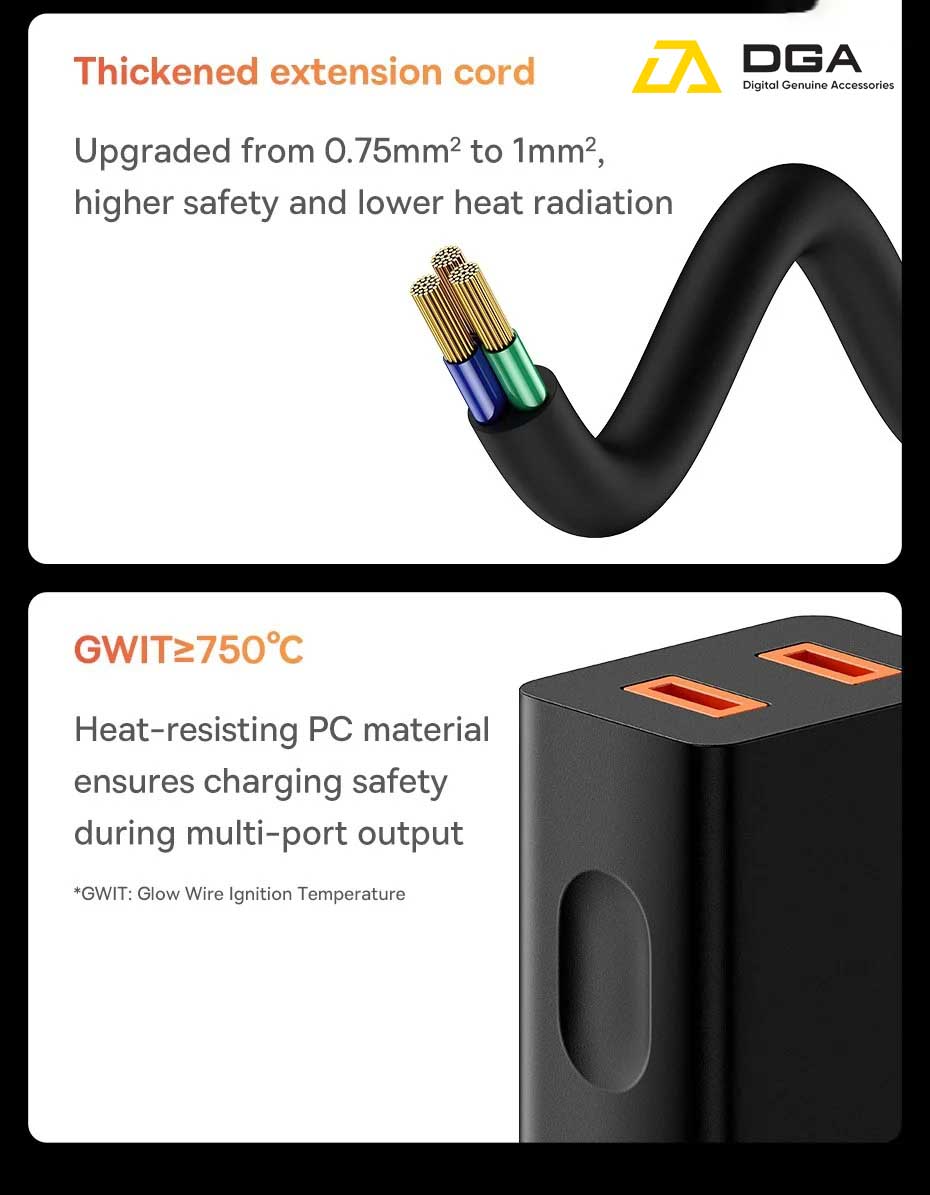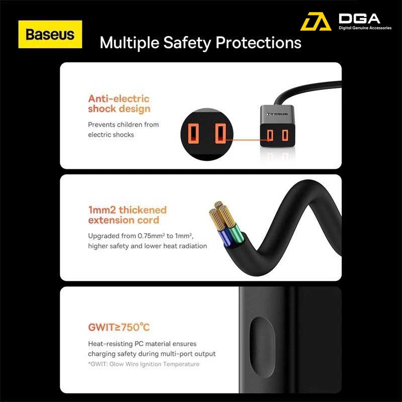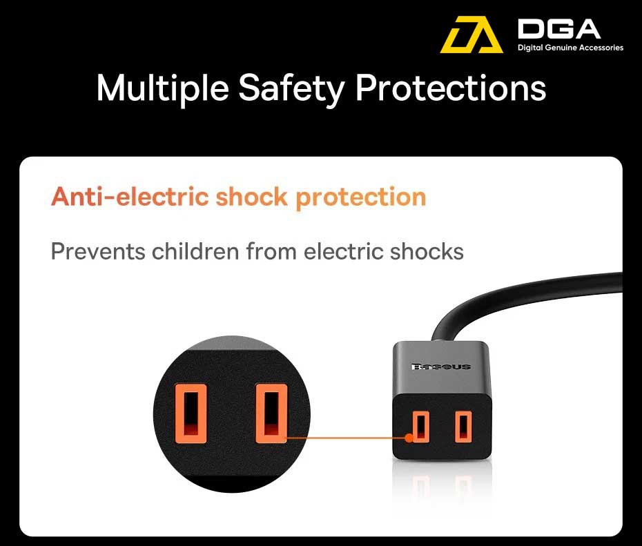 - Baseus PowerCombo được tích hợp nhiều tính năng bảo vệ đạt chuẩn CCC : bảo vệ quá dòng, ngắn mạch, quá nhiệt, chống nhiễu, chống nổ, chống giật.