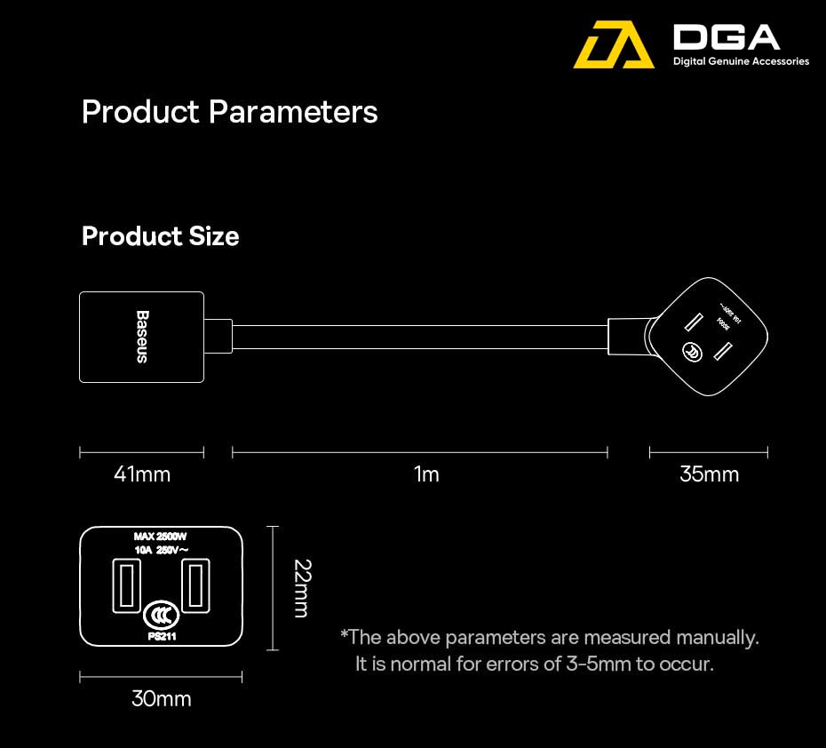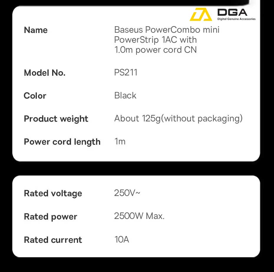 Tính Năng Dây Cắm Nguồn AC Nối Dài Tiện Lợi Baseus PowerCombo Mini PowerStrip 1AC (Chiều dài 1m, dùng cho củ sạc điện thoại )
