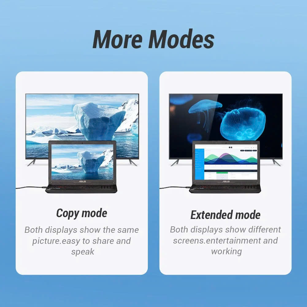 Với khả năng hỗ trợ độ phân giải lên đến 1080P, bộ chuyển đổi này giúp bạn truyền tải hình ảnh rõ nét và sắc màu chân thực. Điều này rất hữu ích cho việc trình chiếu nội dung trong các buổi họp, lớp học hoặc xem phim.