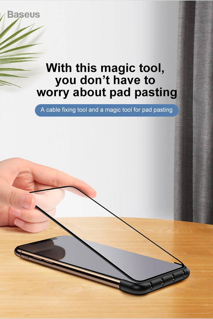 Bộ cố định dây cáp kiêm hỗ trợ dán màn hình Baseus Cable Fixing Magic Tool LV378 cho iPhone X/ XS/ XR/ XS Max (Cable Organizer and Tempered Glass Installation Helper)
