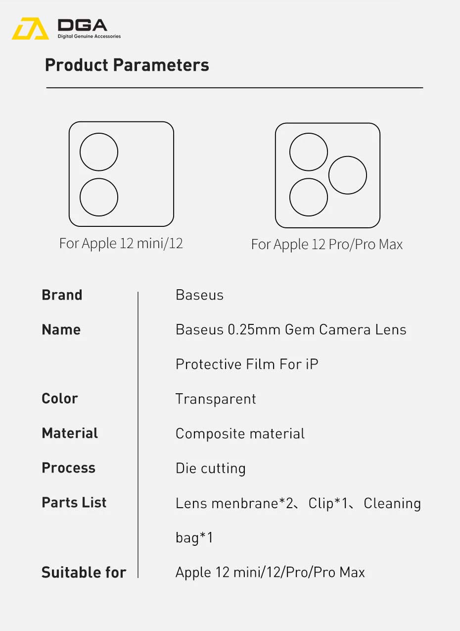Giới thiệu sản phẩm Bộ kính cường lực chống trầy Camera Baseus Gem Camera Lens Protective Film dùng cho iPhone 12 Series
