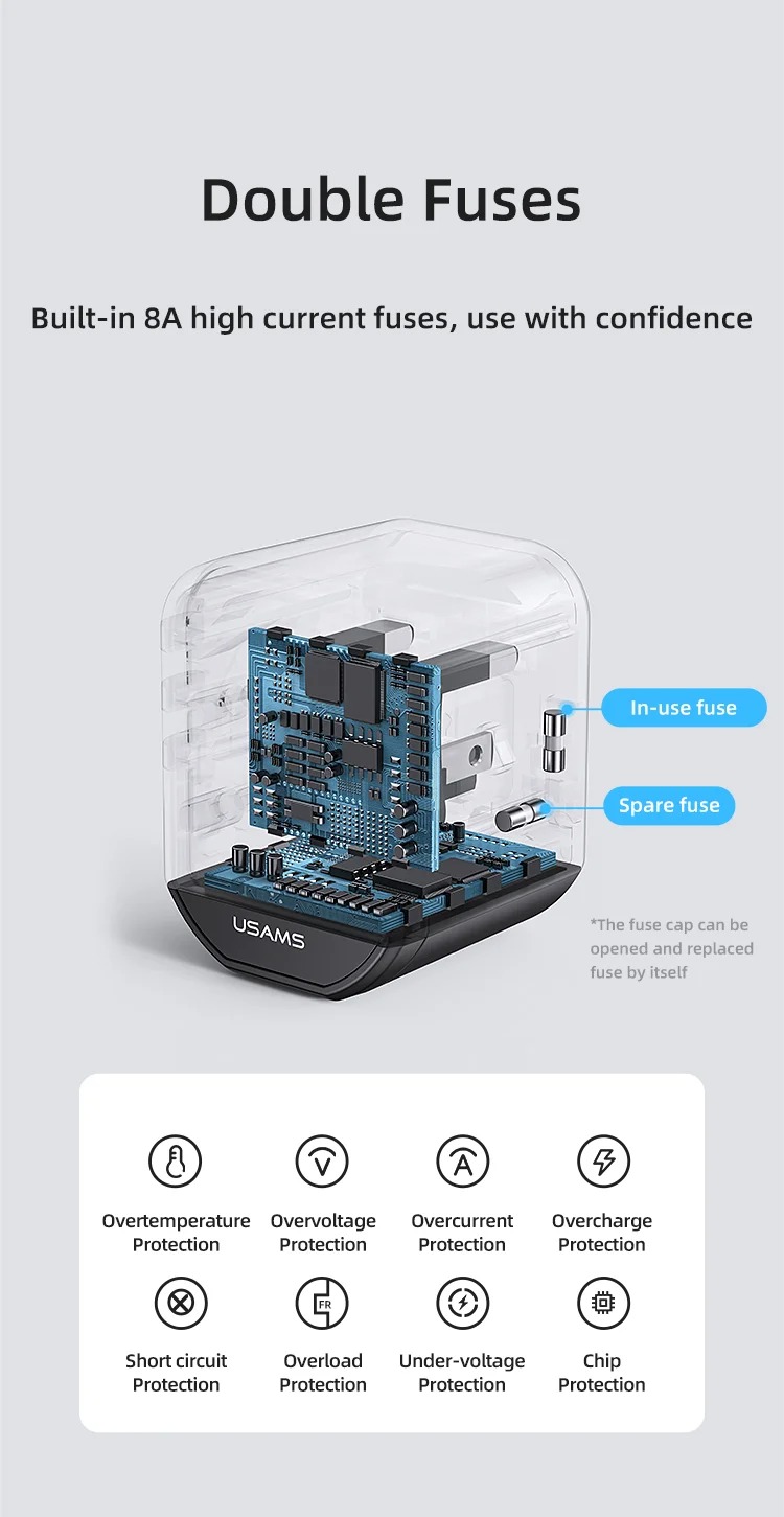 USAMS US-CC179 T59 được trang bị các công nghệ bảo vệ an toàn, giúp ngăn ngừa các sự cố như quá dòng, quá áp, quá nhiệt và ngắn mạch, bảo vệ thiết bị của bạn trong quá trình sạc.