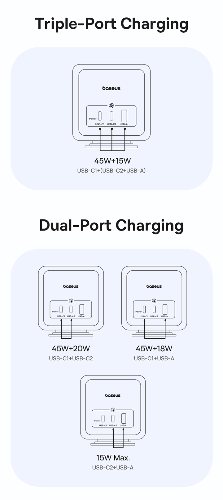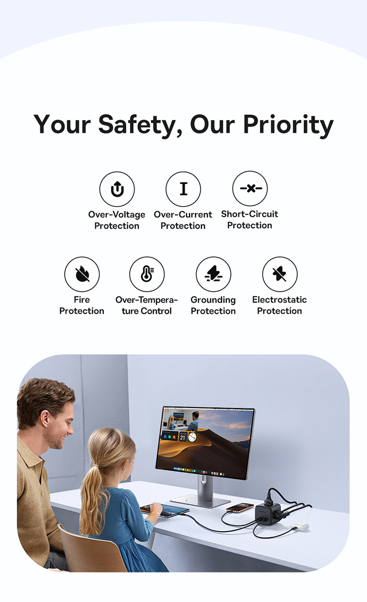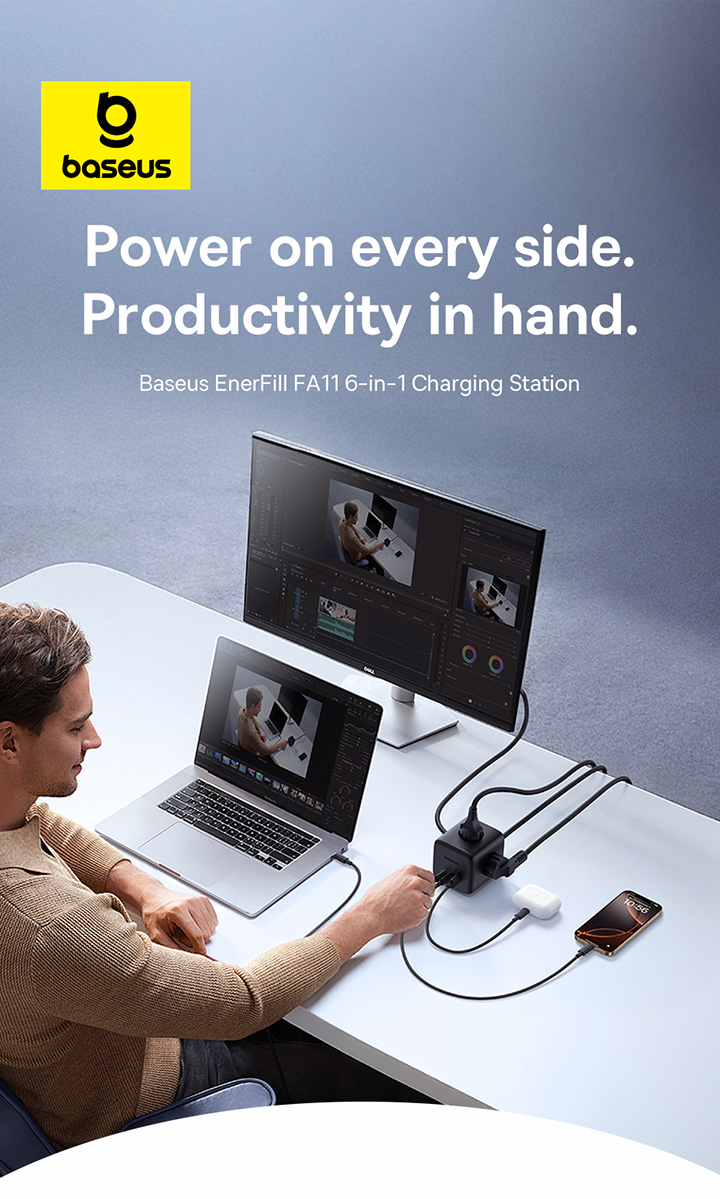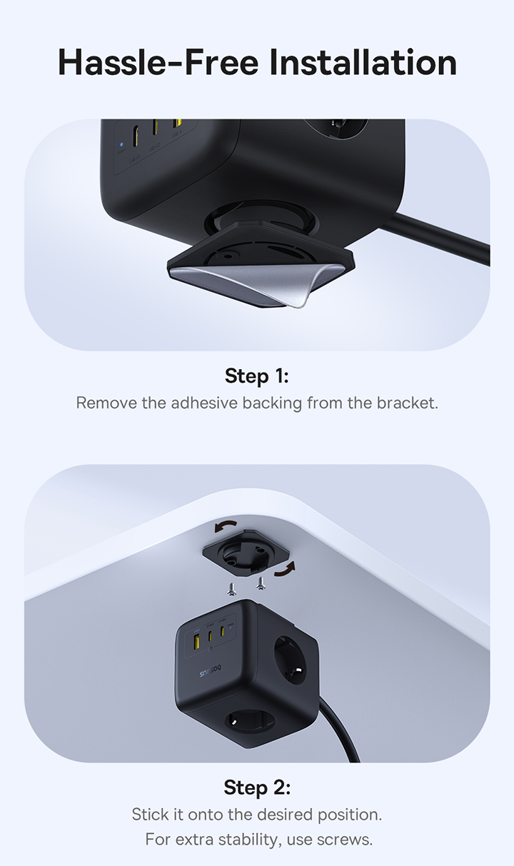 Bộ Sạc Nhanh 3AC+1U+1C Baseus EnerFill FA11 Cube Power Strip 67W (Tích Hợp Dây Nguồn Nối Dài 1.5m Chân EU)