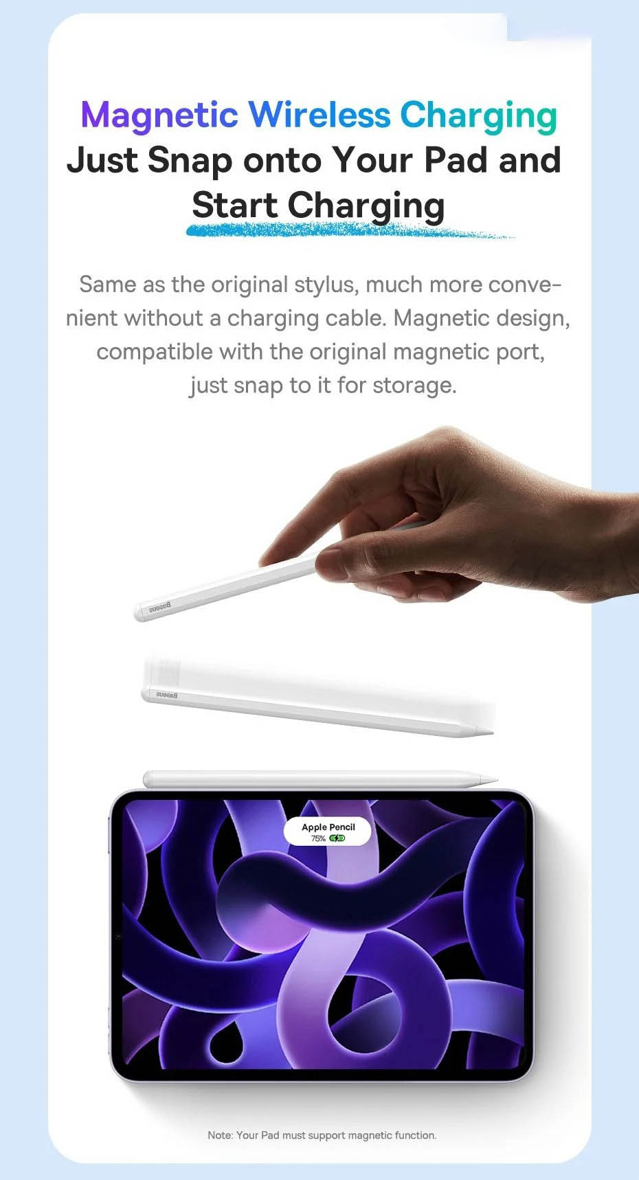 Giới Thiệu Bút Cảm Ứng Baseus Pencil 2 Smooth Writing Wireless Charging Stylus Dùng Cho IPad (Magnetic Palm rejection 4D)
