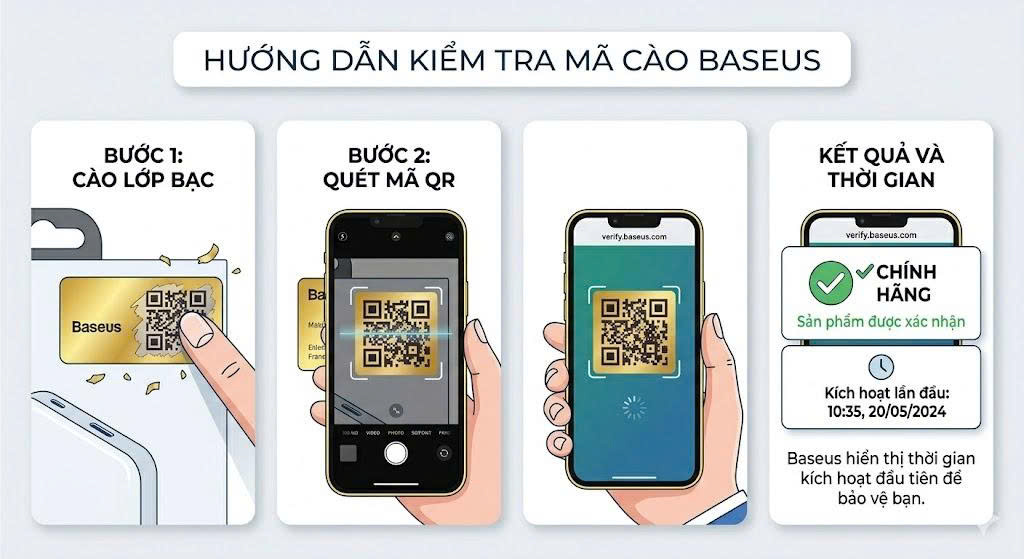 Baseus sử dụng hệ thống QR Code hiện đại hơn.