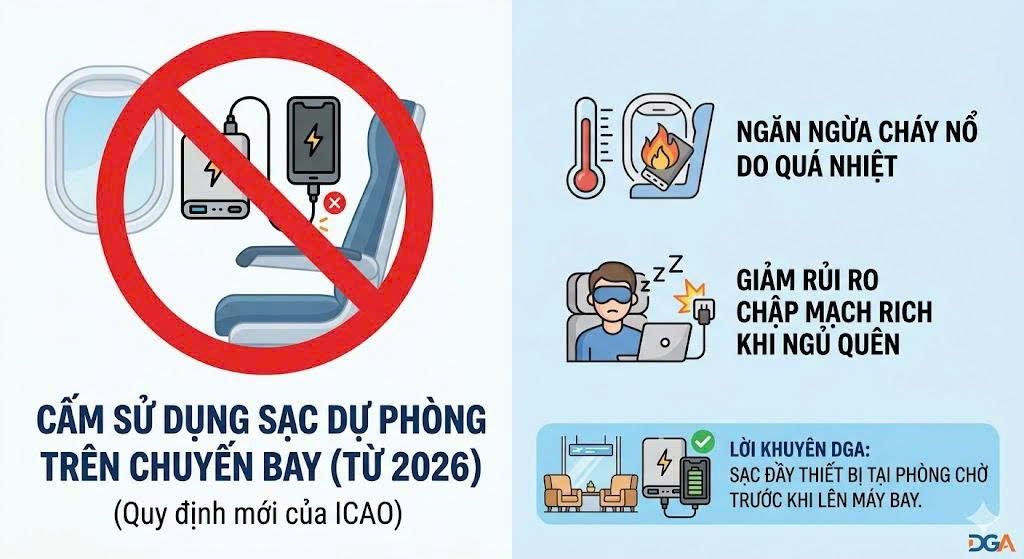 Điểm mới 2026: Lệnh cấm sử dụng sạc dự phòng trong khi bay