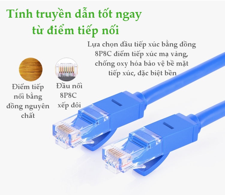 Kết hợp hoàn hảo với mạng lưới 10, 100,1000 Base-T. Cáp loại: CAT6 Cable Jacket Chất liệu: PVC Cable Gauge: 26 AWG Màu sắc: Xanh Hiệu suất cáp lên đến 500 MHz Cable Che chắn: UTP (không được che chở cặp xoắn)