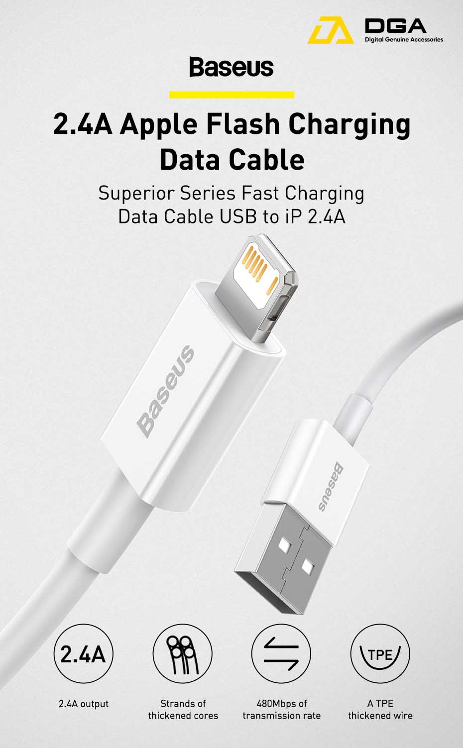 Thông số kỹ thuật Cáp sạc lightning Baseus Superior Series Fast Charging Data Cable cho iPhone/ iPad (2.4A, 480Mbps, Fast charge, ABS/ TPE Cable)