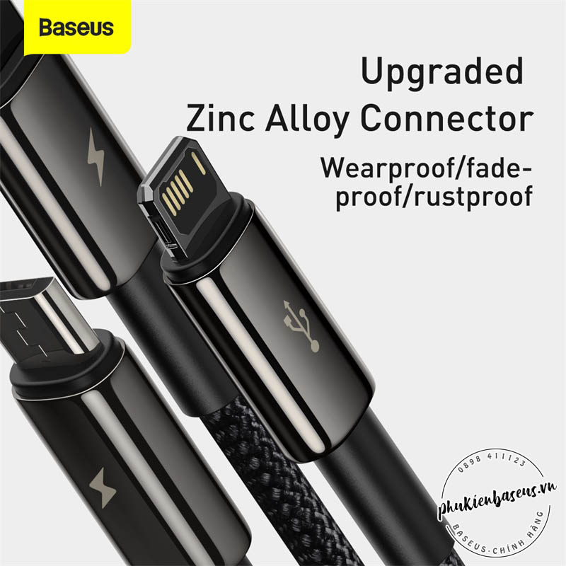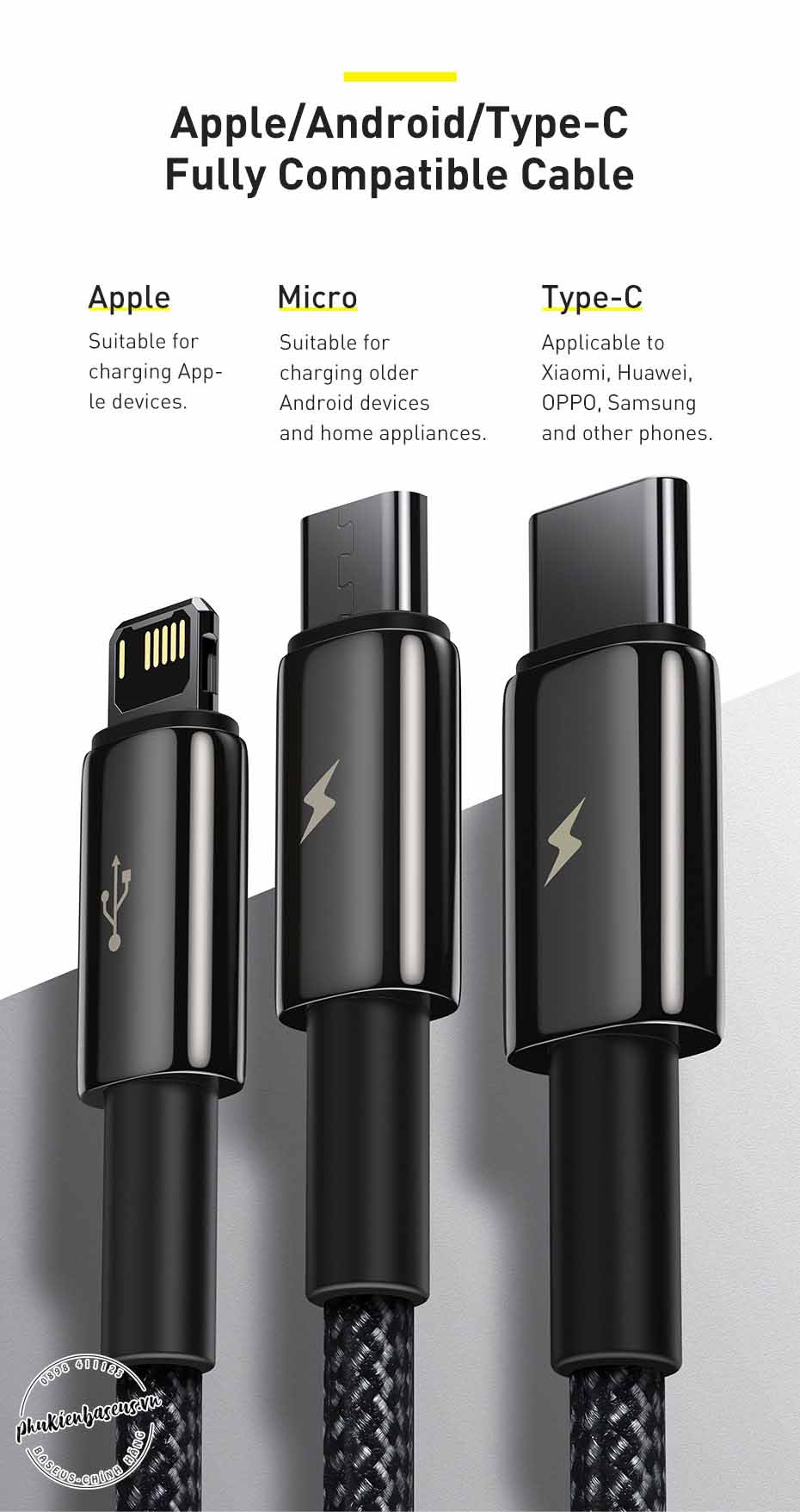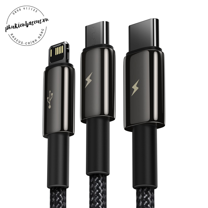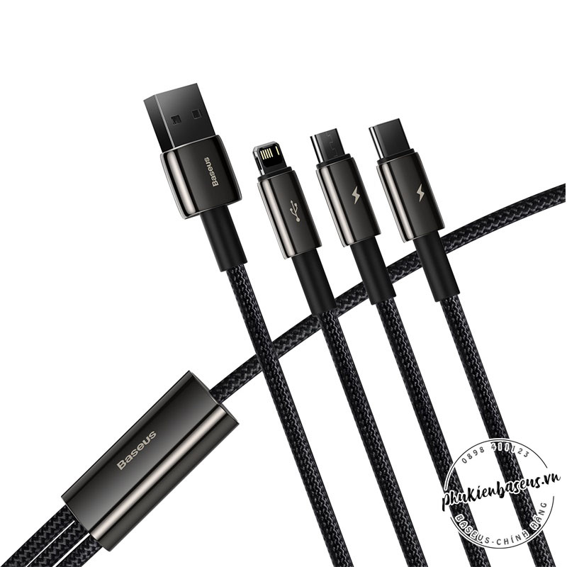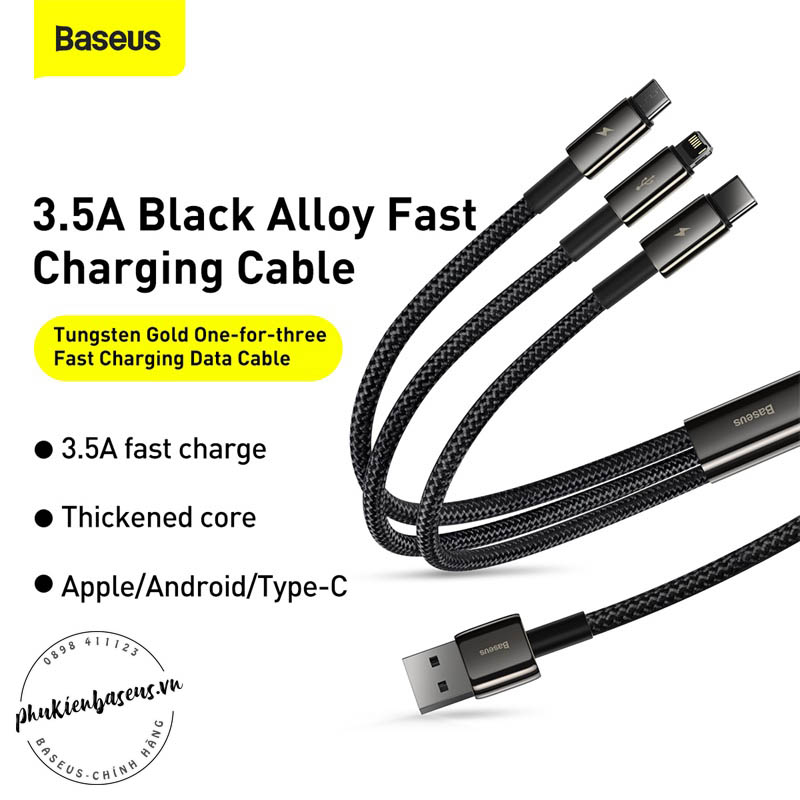 Cáp sạc nhanh 3 đầu siêu bền Baseus Tungsten Gold Series (USB to Type C/ Lightning/ Micro USB, 3.5A Fast Charging & Data Cable )
