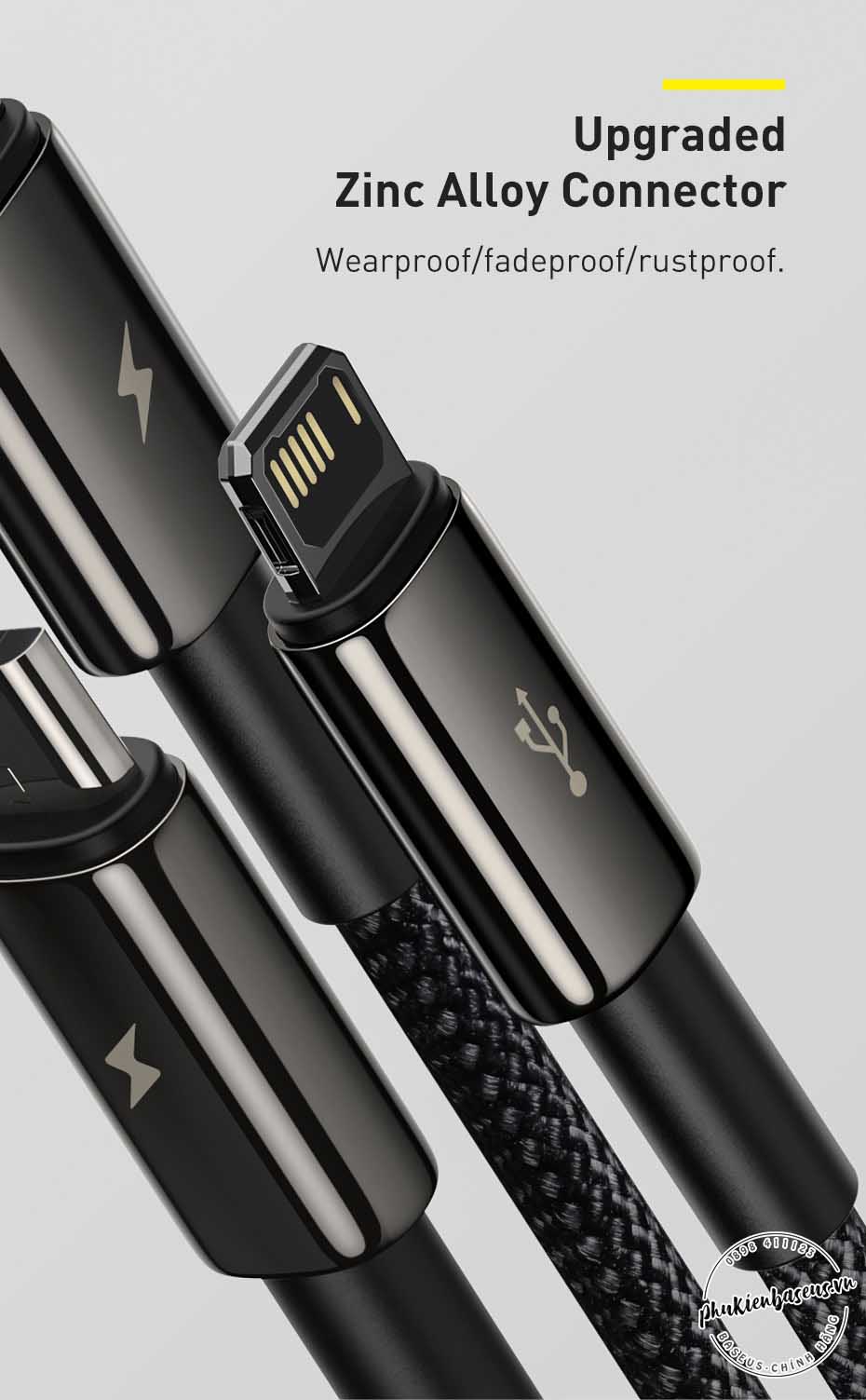 – Là phiên bản cáp sạc đa năng 3 đầu của dòng cáp sạc siêu bền Baseus Tungsten Series . Sản phẩm có độ bền và tính ổn định cực cao nhờ các đầu kết nối và tiếp điểm được làm bằng hợp kim Wolfram siêu bền (hay còn gọi là Tungsten) .