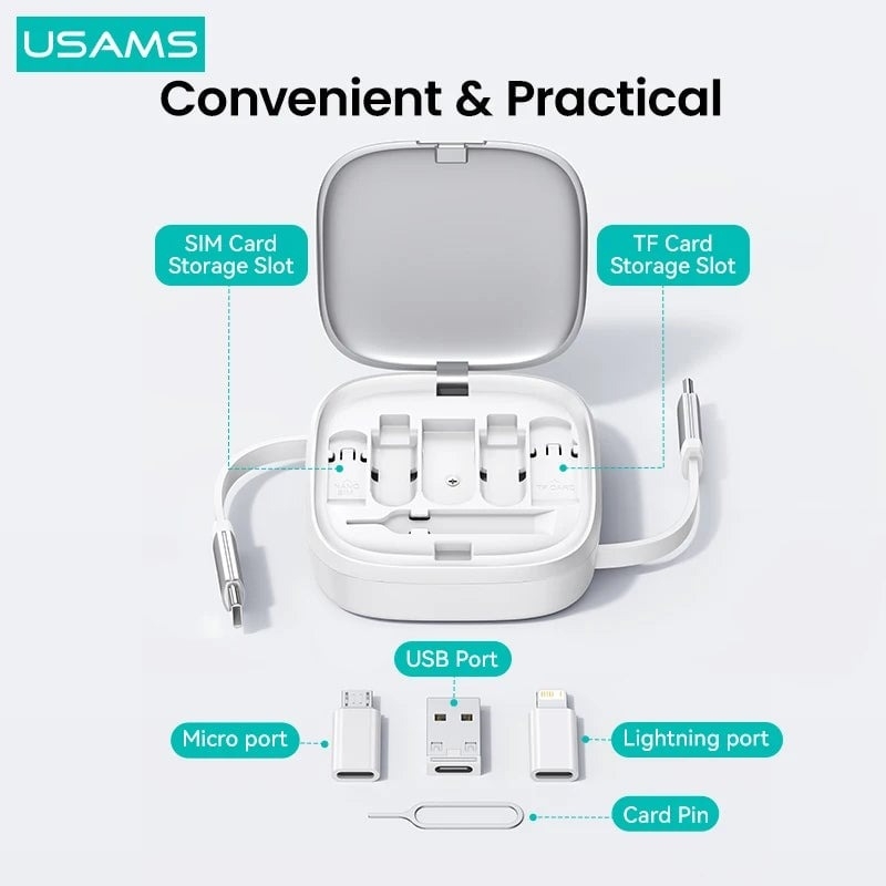 Khác biệt với hộp phụ kiện thông thường, USAMS U87 tích hợp tới 4 đầu chuyển đổi thông minh, không cần mua rời, sử dụng linh hoạt cho đa số nhu cầu: