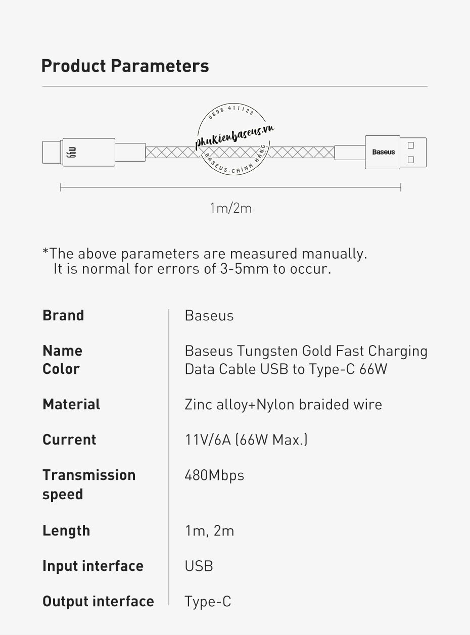 – Cáp sạc nhanh Baseus Tungsten Gold Type C 66W là thế hệ cáp sạc USb to Type C thuộc dòng cáp sạc siêu bền với đầu cáp làm bằng hợp kim Tungsten (hay còn gọi là Wolfram) . Sản phẩm được thiết kế chuyên dụng cho dòng Smartphone/ Table Android với tốc độ sạc nhanh, độ ổn định cao và bền bỉ.