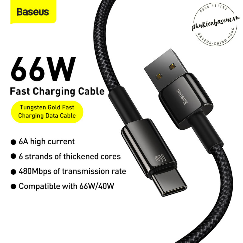 Cáp sạc nhanh Baseus Tungsten Gold Type C Fast Charging Data Cable (6A/ 66W/ 480Mbps, Fast Charge Cable)