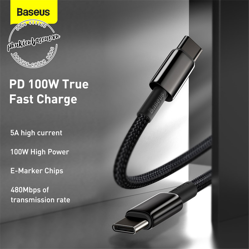 Cáp sạc nhanh C to C 100W Baseus Tungsten Gold Fast truyền dữ liệu