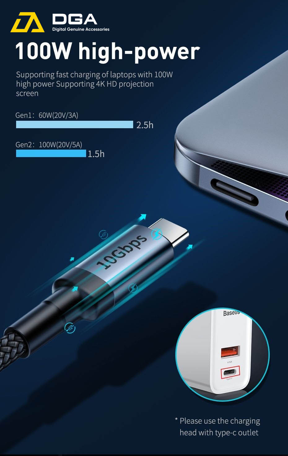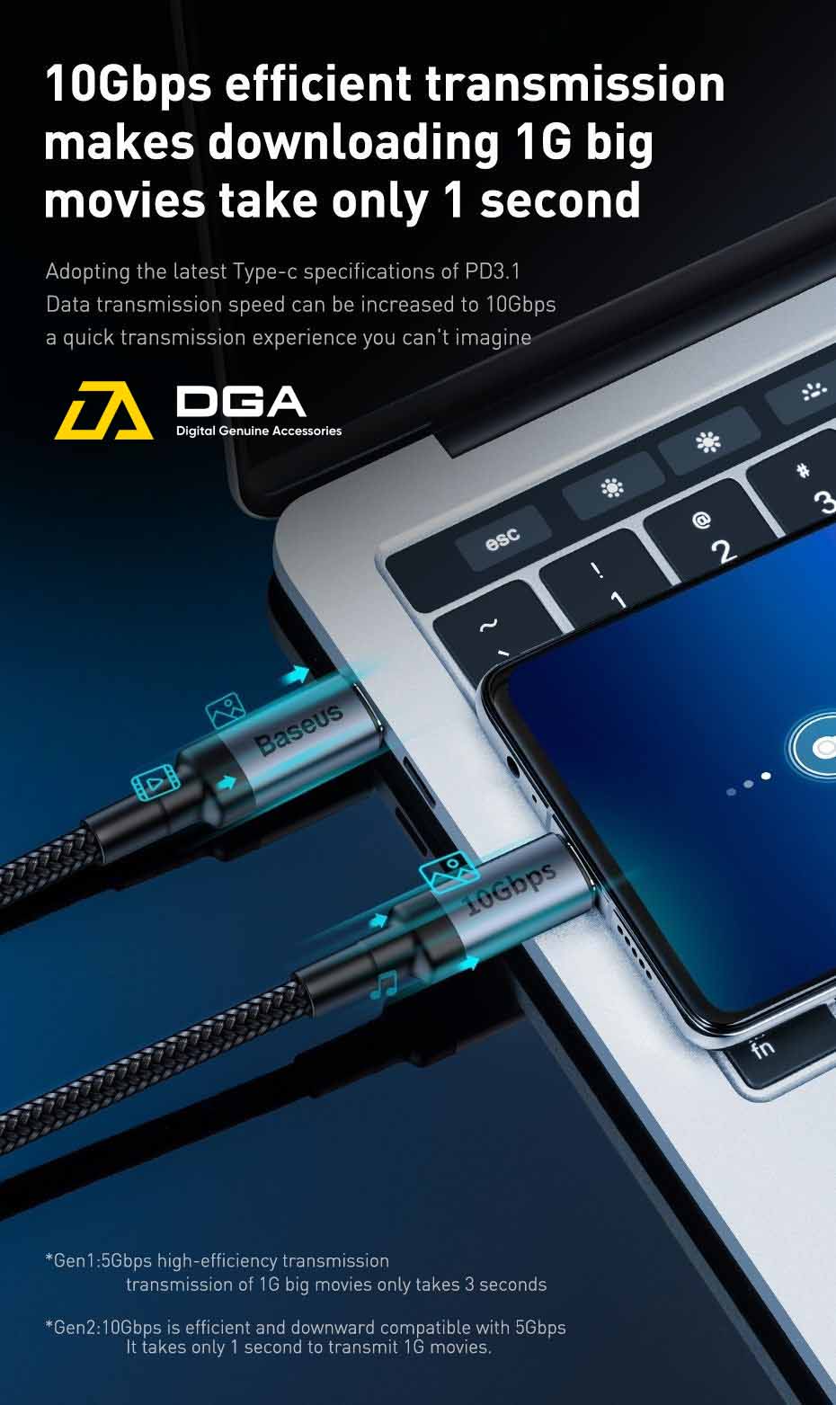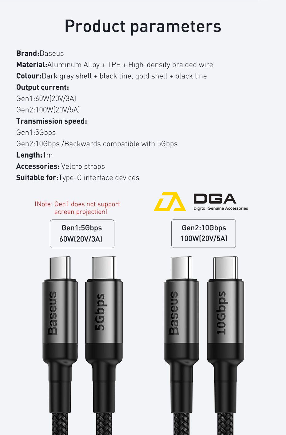 Hình ảnh chi tiết Cáp sạc nhanh, công suất cao Baseus Cafule Series Type-C PD3.1 Gen2 (QC/PD, 100W, 20V/ 5A, 10Gbps, e-Marker Chip support 4K/60Hz )
