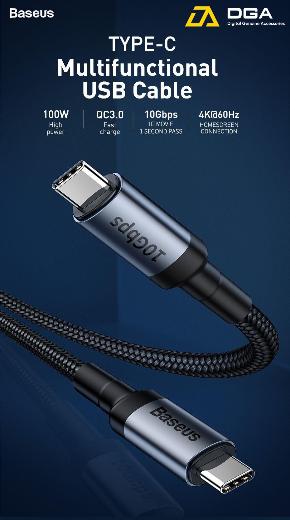 Giới thiệu Cáp sạc nhanh, công suất cao Cáp sạc nhanh, công suất cao Baseus Cafule Series Type-C PD3.1 Gen2 (QC/PD, 100W, 20V/ 5A, 10Gbps, e-Marker Chip support 4K/60Hz )