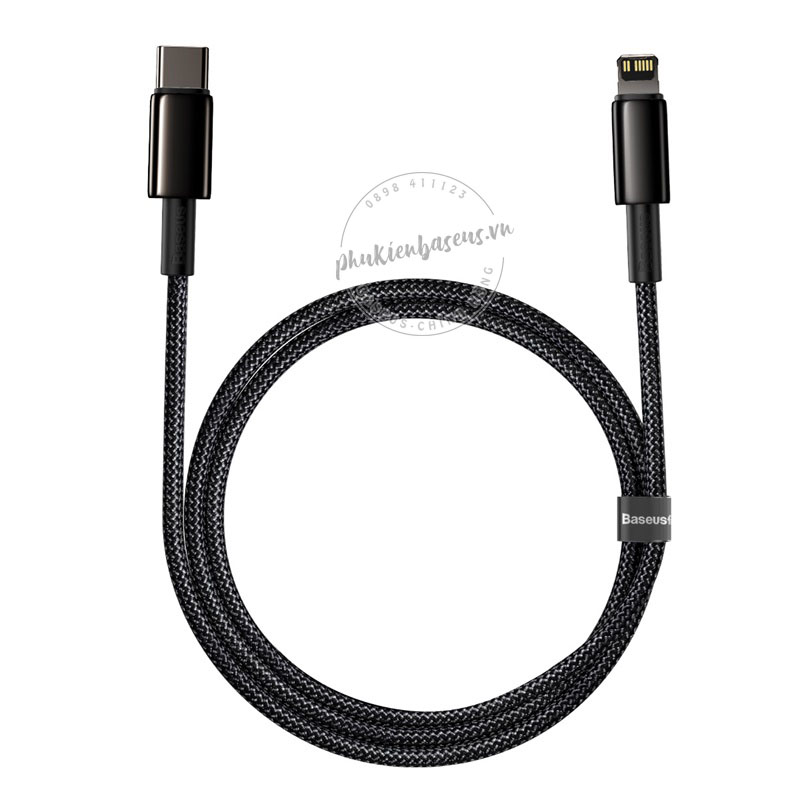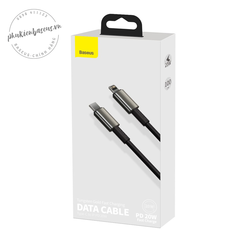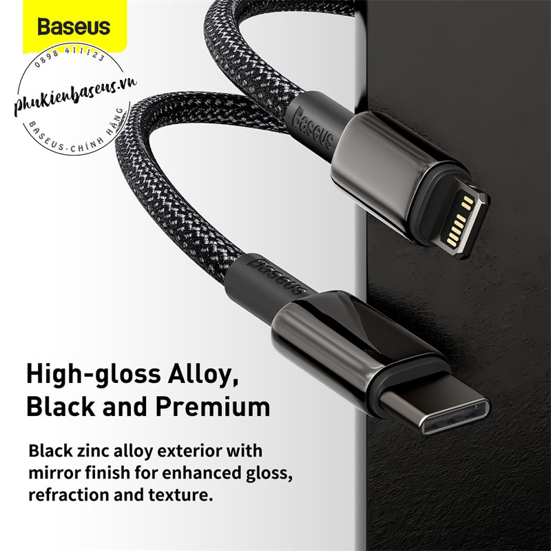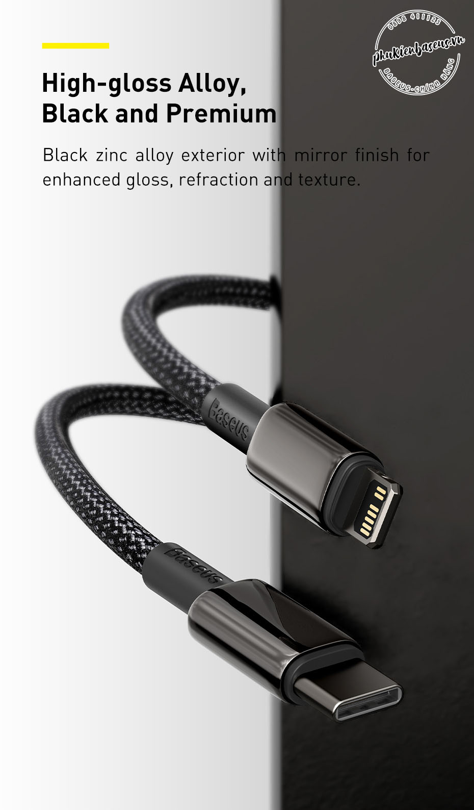 – Cáp sạc nhanh C to Lightning 20W Baseus Tungsten Gold Fast Charging Data Cable Type-C to iP PD được thiết kế sang trọng với màu đen tuyền tráng gương bóng sáng