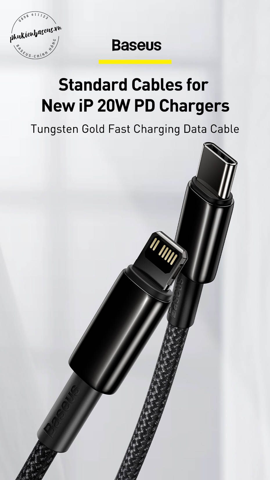 Cáp sạc nhanh C to Lightning 20W Baseus Tungsten Gold Fast Charging Data Cable Type-C to iP PD 20W