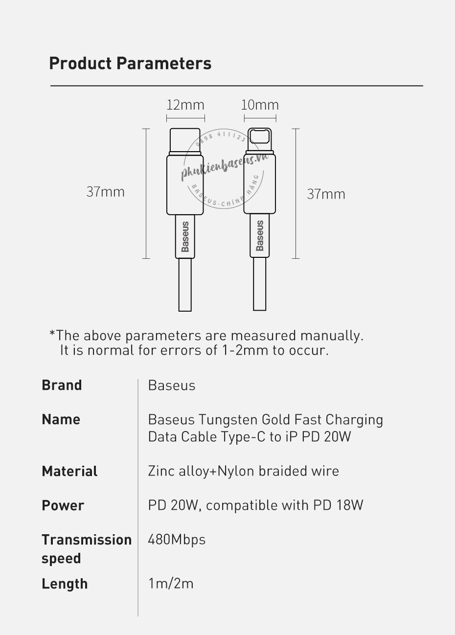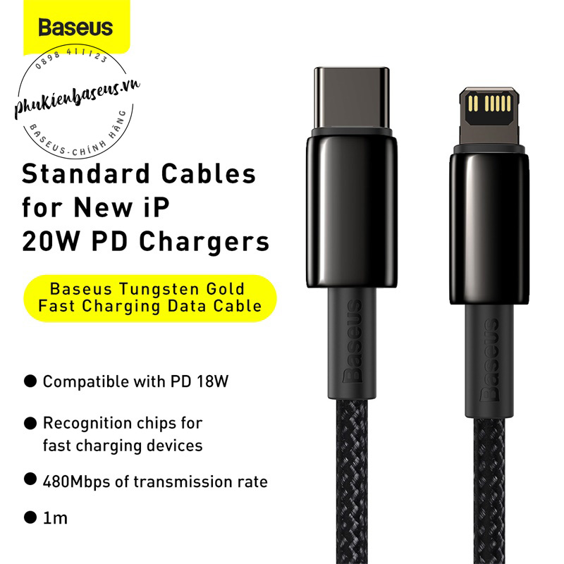 – Baseus Tungsten Gold Fast Charging Data Cable Type-C to iP PD có dòng sạc lên đến 18W và truyền tải dữ liệu tốc độ cao 480Mpbs cho trải nghiệm thoải mái