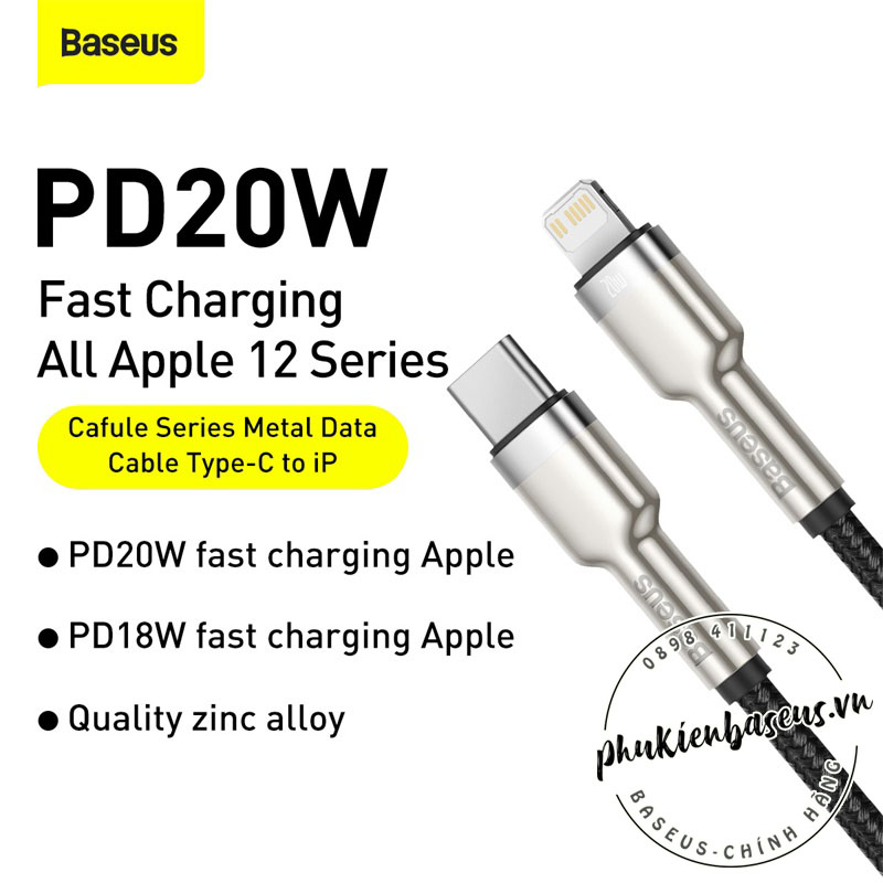 – Cáp sạc nhanh Baseus Cafule Metal Series 20W là thế hệ cáp sạc C to Lightning mới nhất của Baseus. Sản phẩm được thiết kế chuyên dụng cho dòng iPhone 12 mà Apple vừa trình làng. Đảm bảo tốc độ sạc nhanh, độ ổn định cao và tương thích tuyệt đối với dòng iPhone 12