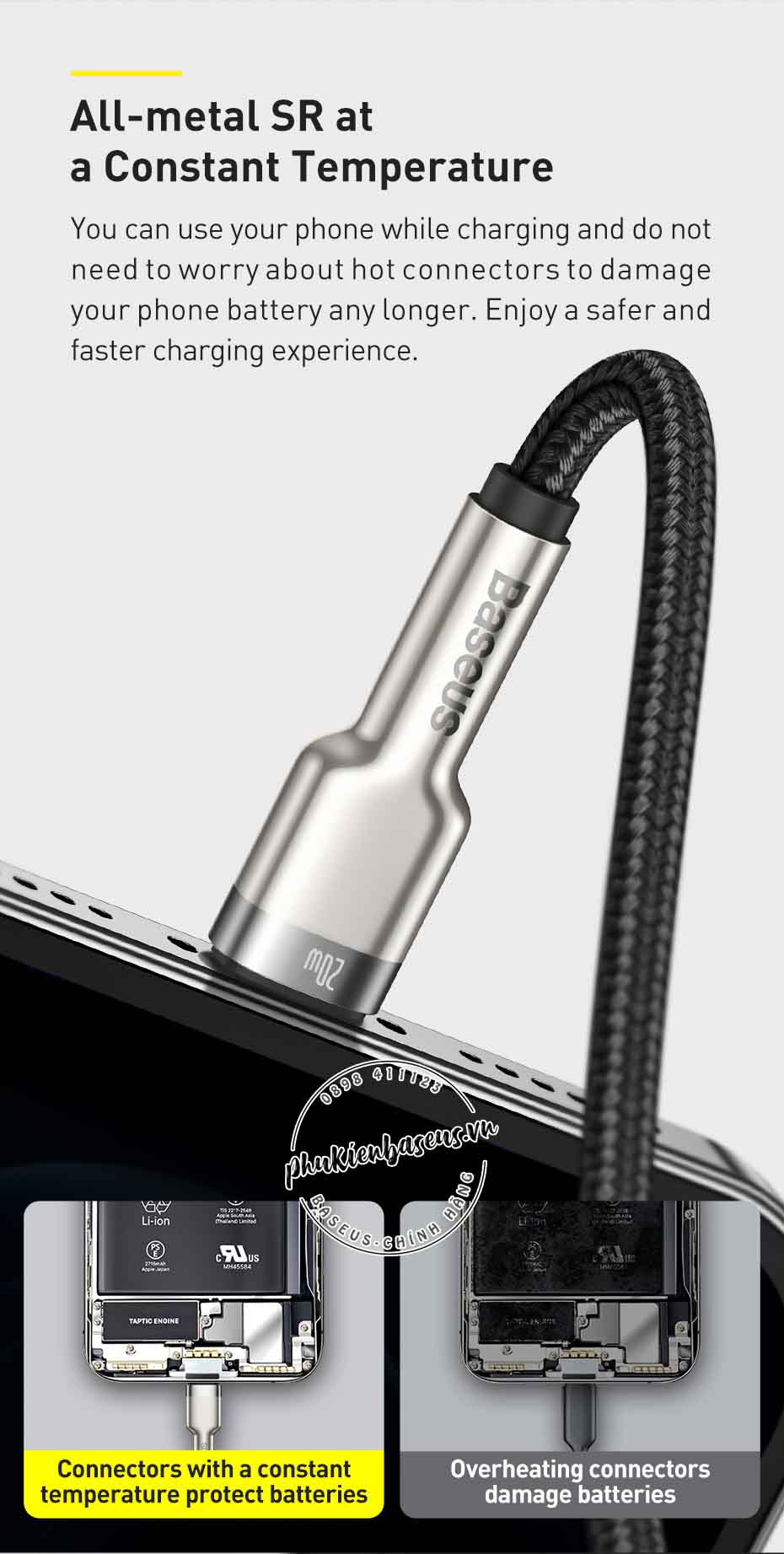 – Đây là phiên bản được Baseus nâng cấp đáng kể chất liệu và độ hoàn thiện, kiểu dáng thiết kế. Sản phẩm với đầu cáp được làm hoàn toàn bằng hợp kim nhôm cao cấp bền nhẹ hơn, chống rỉ sét tốt hơn, kiểu dáng thiết kế chống gảy đầu cáp.
