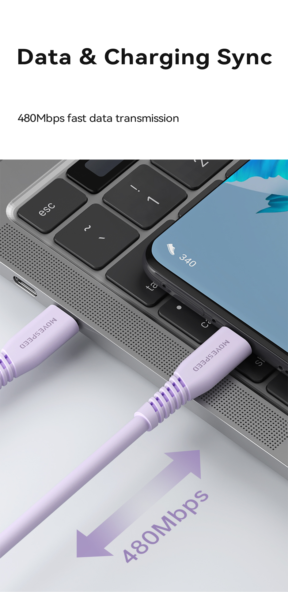 Bên cạnh khả năng sạc nhanh, cáp sạc nhanh Movespeed CT04 PD 60W 1M còn hỗ trợ tốc độ truyền dữ liệu lên đến 480Mbps. Với tốc độ này, bạn có thể: