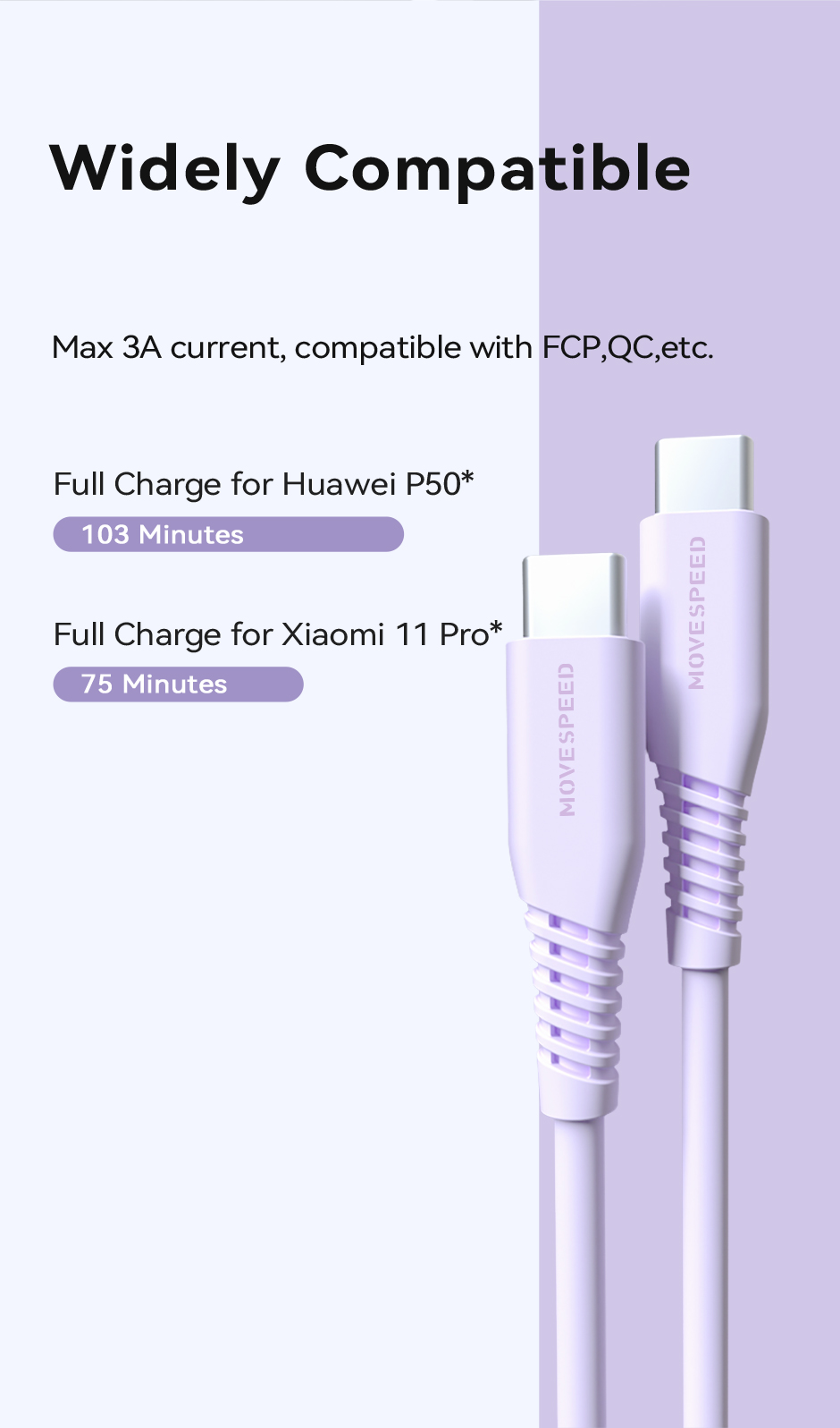 Nhờ khả năng chịu dòng tối đa ở mức phù hợp cho PD 60W, cáp sạc nhanh Movespeed CT04 giúp tối ưu thời gian sạc mà vẫn đảm bảo an toàn cho cả củ sạc lẫn thiết bị.