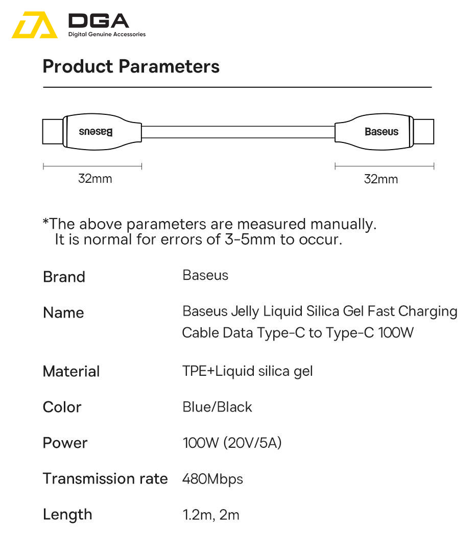 – Cáp Sạc Nhanh Type-C to Type-C 100W Baseus Jelly Liquid Silica Gel Fast Charging Data Cable Trang bị 8 lõi đồng cho khả năng sạc với công suất lên đến 100W phù hợp cho cả điện thoại cũng như laptop.