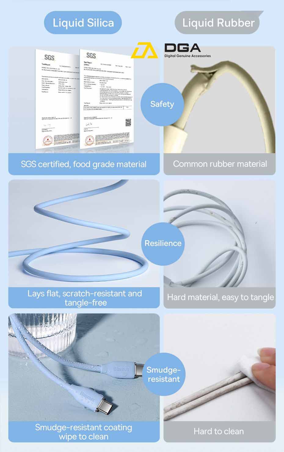 – Chất liệu dây silicone hạn chế đứt gãy, chống rối, chịu nhiệt tốt và đặc biệt là chống nước, bụi bẩn.