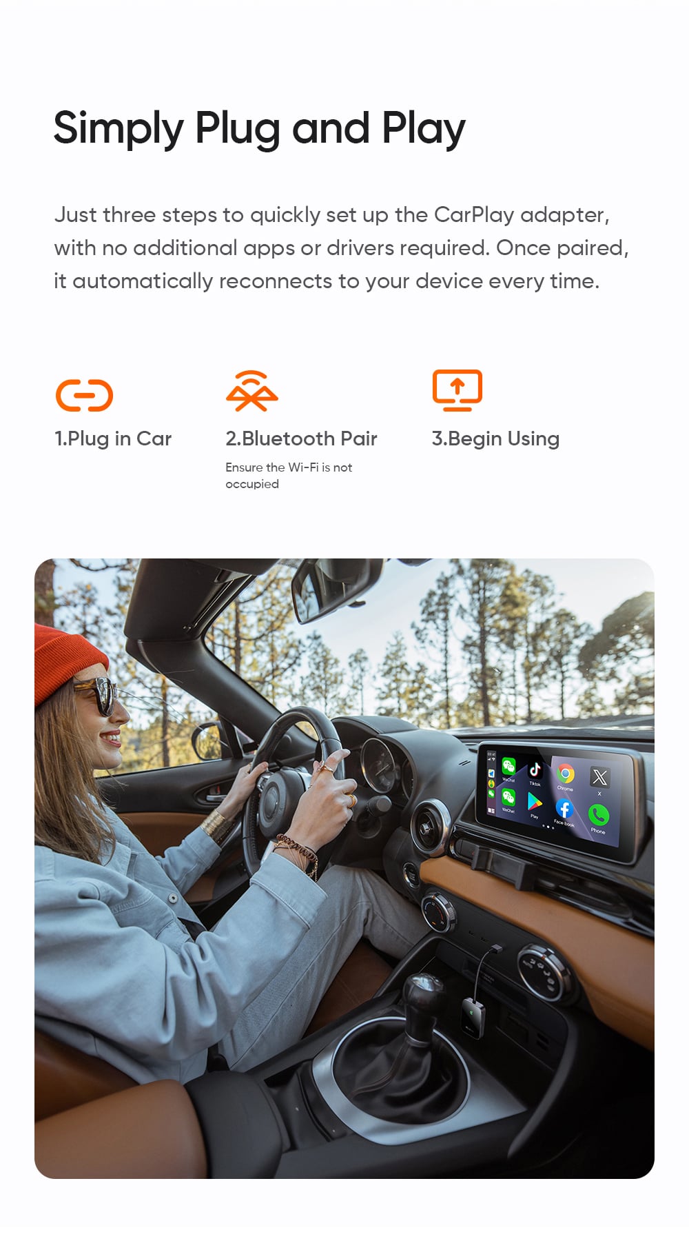 | Tính năng chính | Chuyển CarPlay có dây thành CarPlay không dây, hỗ trợ Siri/voice control, cập nhật OTA |