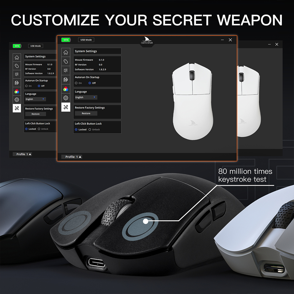 Dưới hai bên phím chuột được trang bị TTC switch với độ bền lên tới 80 triệu lần nhấp. Độ nảy cao nhưng không gây ồn ào. Chuột Darmoshark M3 có tốc độ phản hồi cực kỳ nhanh, giúp bạn vượt mặt đối thủ trên mọi chiến trường ảo.