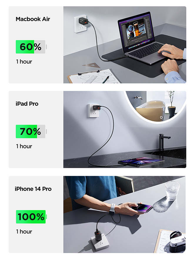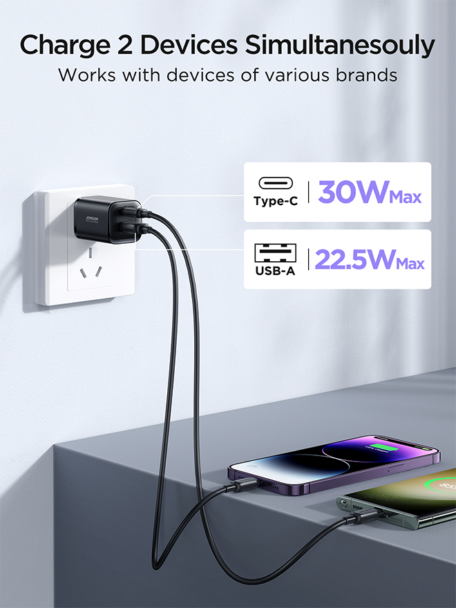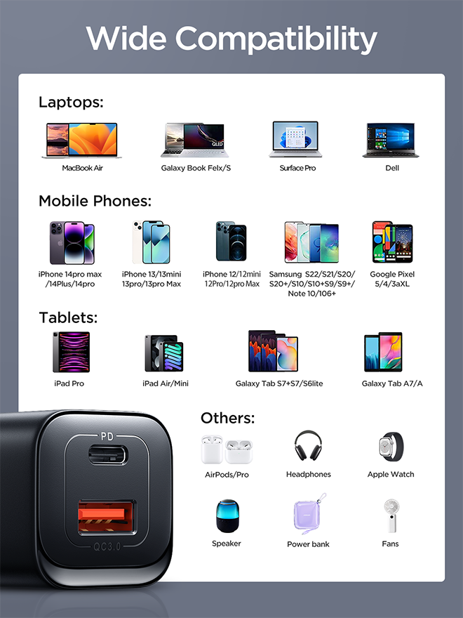 "1. Supports PD 30W & Samsung PPS 25W fast charging, provides charging for phones, tablets, and more