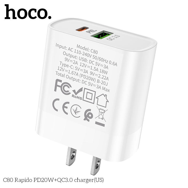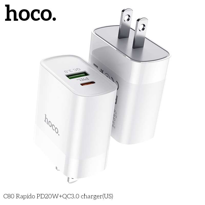 Cốc sạc nhanh PD- QC3.0 Hoco C80 20W một lựa chọn hợp lý cho mọi người dùng với khả năng sạc nhanh ổn định, sạc cùng lúc 2 thiết bị và đặc biệt là giá cả vừa túi tiền.