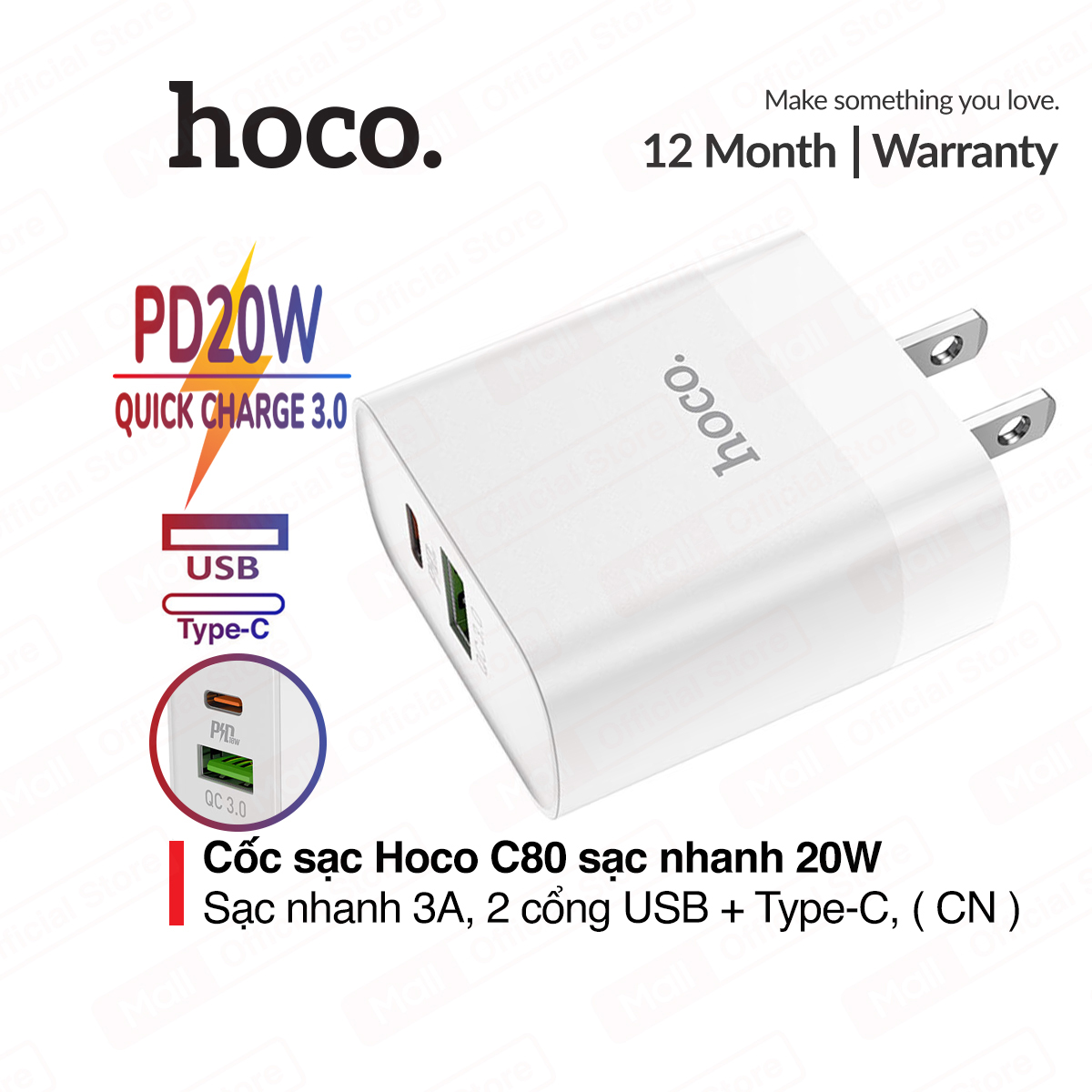 Ưu điểm Cốc sạc nhanh PD- QC3.0 Hoco C80 20W