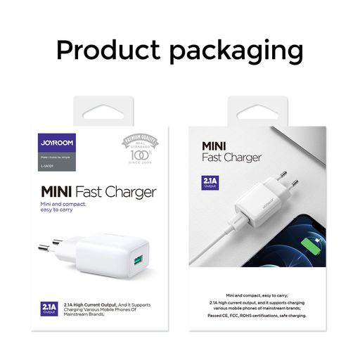 Cóc sạc Joyroom 1A101 2.1A 1 cổng USB Mini Fast Travel Charger EU