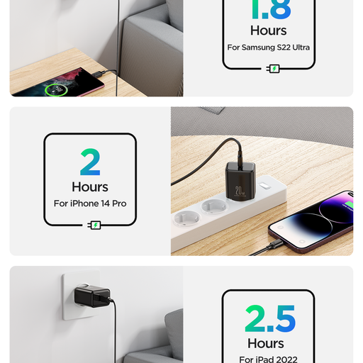 1.Cung cấp sạc nhanh công suất cao PD 20W cho điện thoại và máy tính bảng của nhiều thương hiệu khác nhau