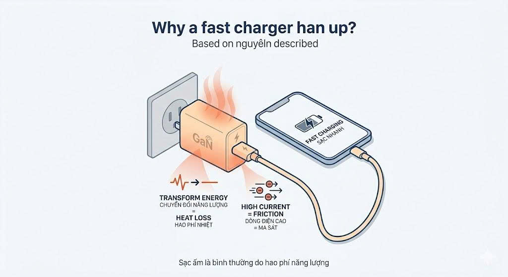 Trong kỷ nguyên công nghệ hiện nay, sạc nhanh đã trở thành một tiêu chuẩn không thể thiếu. Tuy nhiên, đi kèm với sự tiện lợi đó là nỗi lo lắng chung của nhiều người dùng: "Tại sao củ sạc lại nóng lên nhanh chóng?". Liệu mức nhiệt đó có làm hỏng điện thoại hay thậm chí gây cháy nổ?