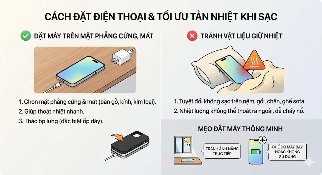 Cách đặt điện thoại và tối ưu tản nhiệt khi sạc