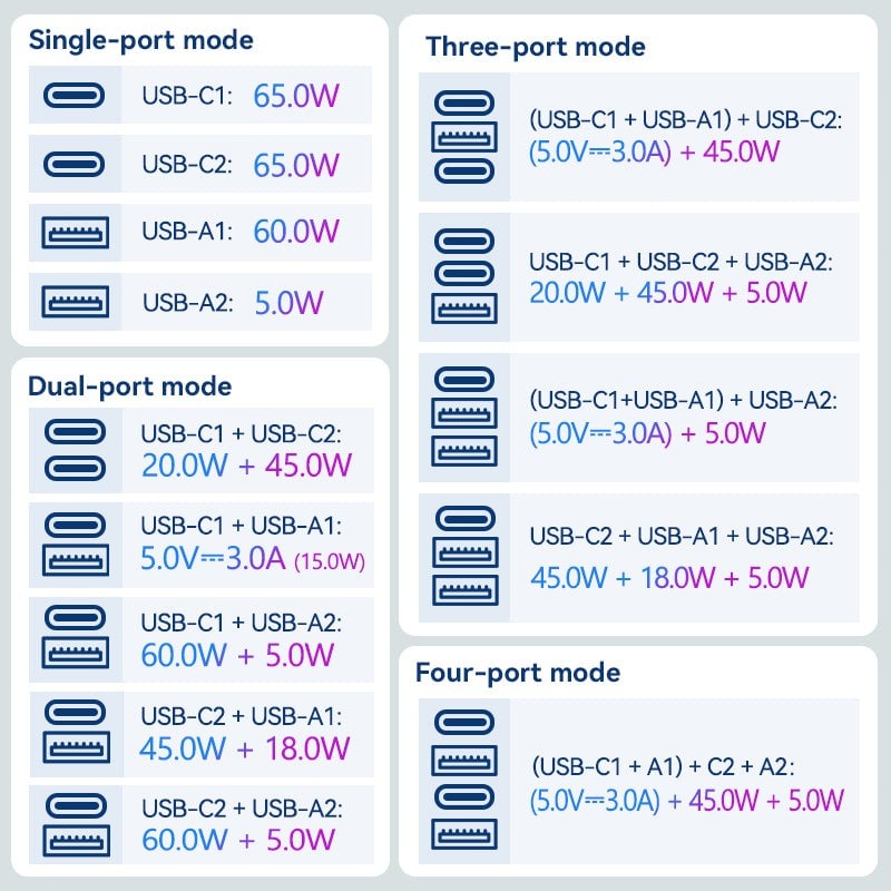 - Sạc nhanh cho iPhone/Android: Tối ưu hóa tốc độ sạc cho các dòng điện thoại thông minh.