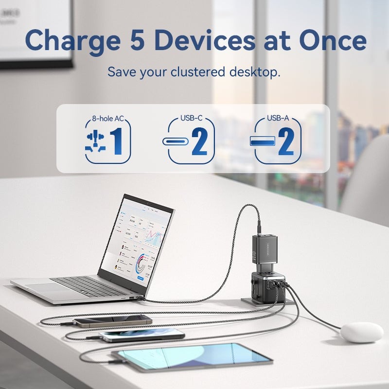 - 2 cổng USB-A: Tương thích với nhiều loại thiết bị, từ điện thoại thông minh, máy tính bảng, tai nghe không dây, đồng hồ thông minh...