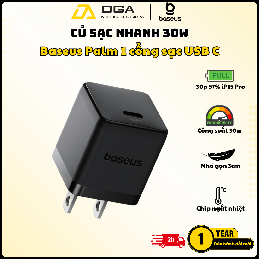 Bạn đang tìm kiếm một củ sạc nhanh, nhỏ gọn và đa năng, có thể sạc siêu tốc cho iPhone, iPad, Samsung, Google Pixel và nhiều thiết bị khác? Củ Sạc Nhanh Baseus Palm 1C 30W chính là sự lựa chọn lý tưởng dành cho bạn! Với thiết kế siêu nhỏ gọn như lòng bàn tay, công suất 30W mạnh mẽ cùng cổng USB-C hiện đại, sản phẩm này sẽ là người bạn đồng hành hoàn hảo, giúp bạn nạp đầy pin cho thiết bị một cách nhanh chóng và tiện lợi.