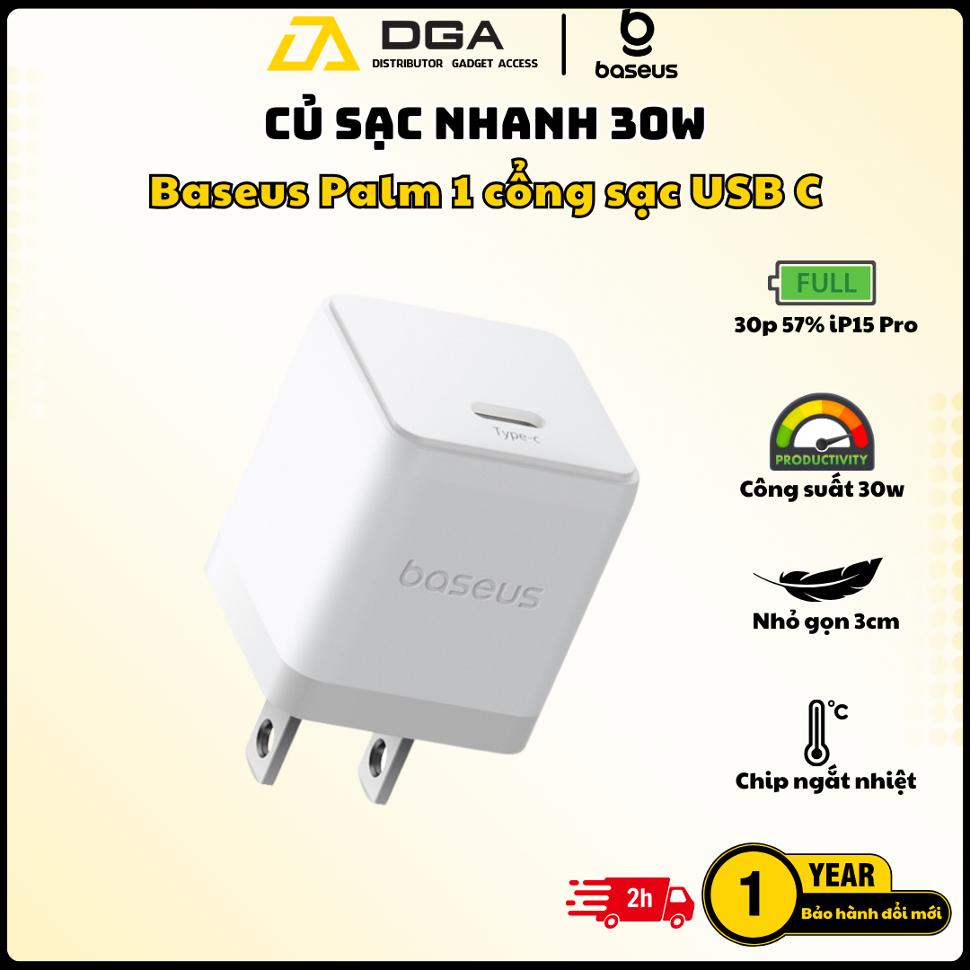 Củ Sạc Nhanh Baseus Palm 1C 30W là một phụ kiện nhỏ gọn, mạnh mẽ và đáng tin cậy, giúp bạn sạc nhanh chóng cho iPhone, iPad, Samsung, Google Pixel và nhiều thiết bị khác. Với thiết kế tiện lợi, an toàn và khả năng tương thích rộng rãi, đây là một lựa chọn thông minh cho mọi người dùng.
