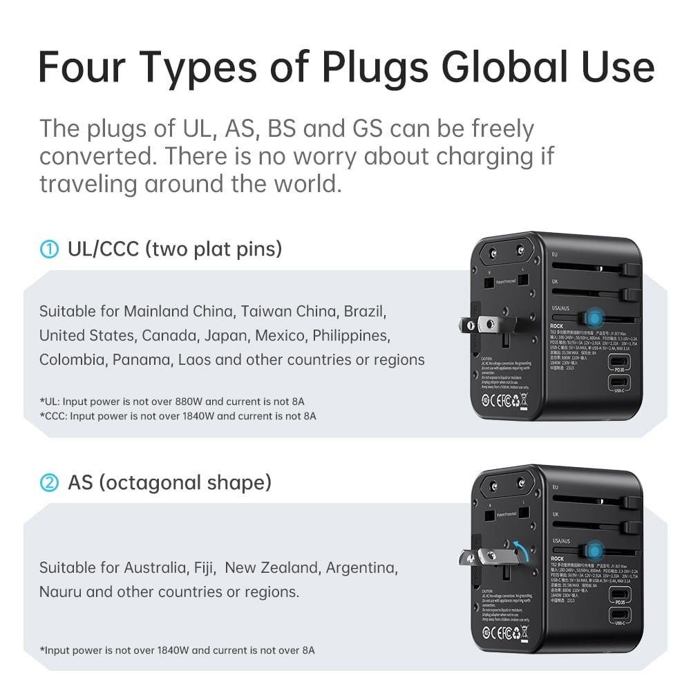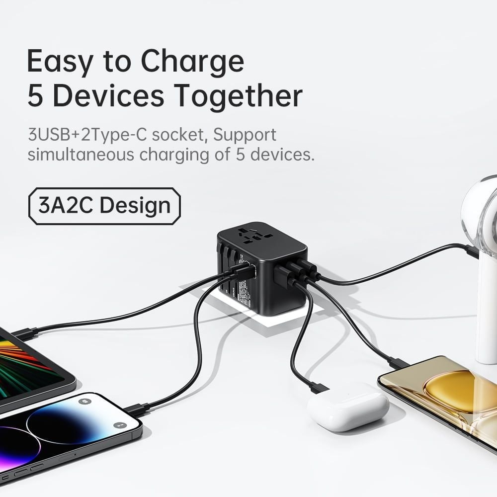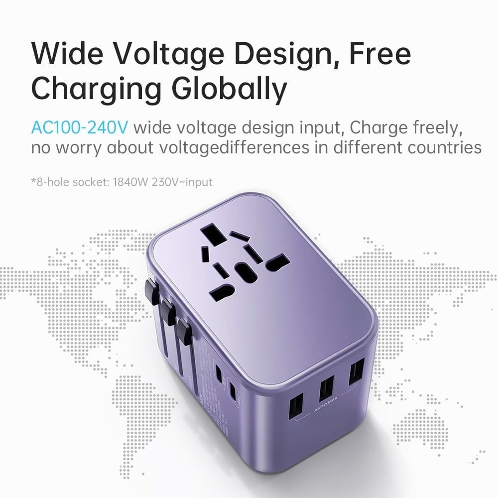 Củ sạc này được thiết kế để sử dụng trên toàn thế giới với các cổng sạc đa năng, phù hợp với các loại ổ cắm khác nhau trên thế giới.