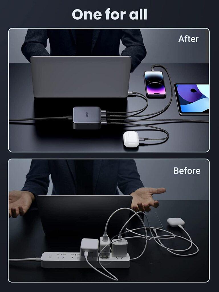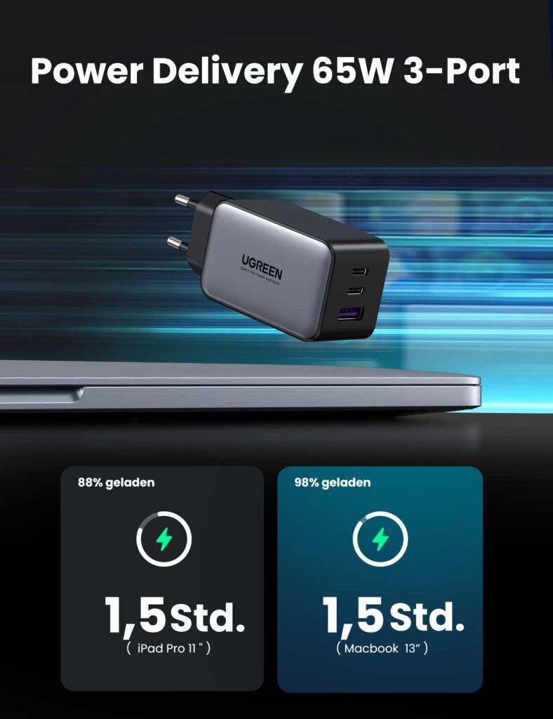 Với cổng sạc ra 2 x Type-C, 1 x USB-A phù hợp với laptop, điện thoại,… quá trình sạc pin nhanh chóng và ổn định hơn nhiều so với những sản phẩm khác. Hãng Ugreen sản xuất ra nhiều thiết bị chất lượng cao và củ sạc này cũng nhận được sự quan tâm từ phía khách hàng.