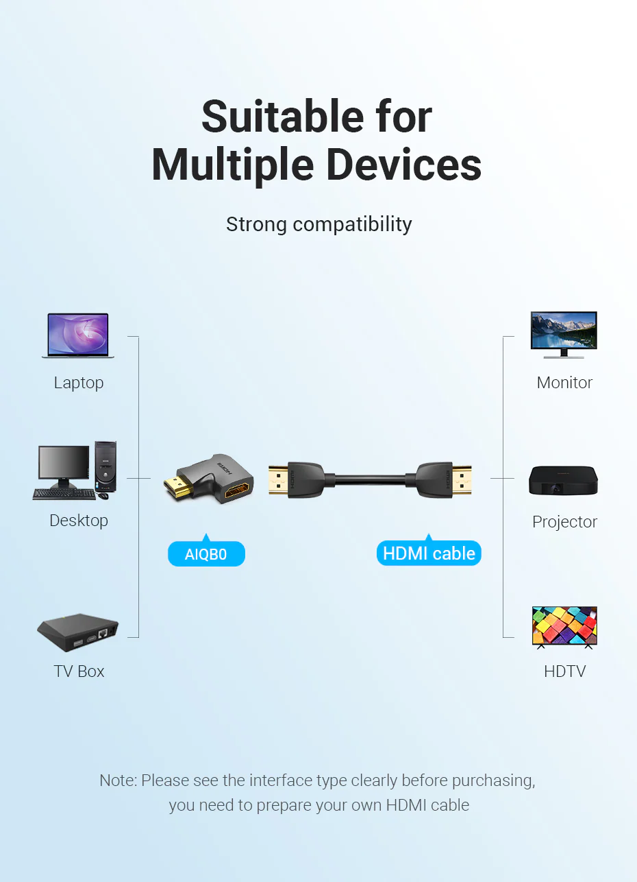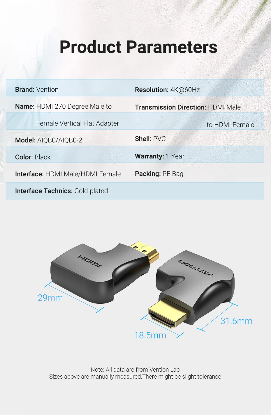 Với VENTION HDMI 90 Degree Adapter AIQ-B0, bạn sẽ có một giải pháp kết nối HDMI gọn gàng, tiện lợi và bền bỉ theo thời gian! 🚀