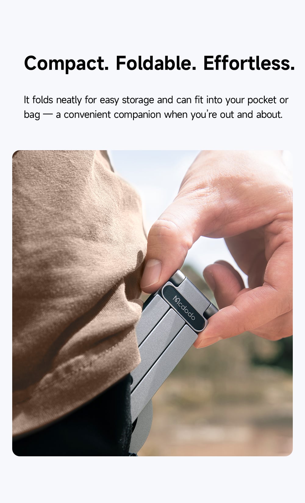 TB-621 được trang bị cấu trúc gập gọn (foldable) giúp bạn dễ dàng điều chỉnh góc nghiêng theo nhiều hướng khác nhau. Khi cần sử dụng, chỉ việc mở chân đế, dựng điện thoại theo chiều dọc hoặc ngang tùy nhu cầu; khi không dùng, có thể gập sát lại để cất vào ngăn kéo, balo, túi xách mà không chiếm chỗ. Thiết kế này giúp đế trở thành phụ kiện lý tưởng cho người hay di chuyển giữa nhà – văn phòng – quán cà phê nhưng vẫn muốn giữ thói quen đặt điện thoại ở tầm nhìn chuẩn.