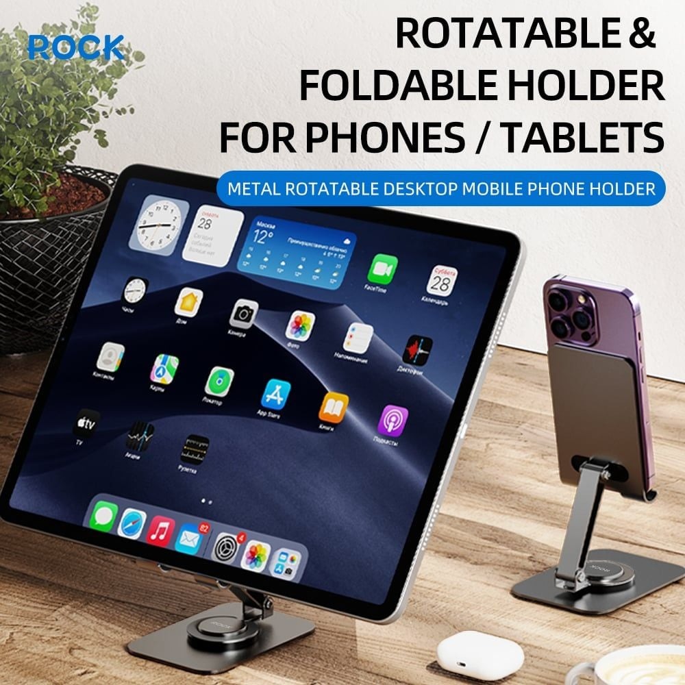 TÍNH NĂNG ĐẾ GIỮ ĐIỆN THOẠI ROCK METAL ROTATABLE DESKTOP MOBILE PHONE HOLDER