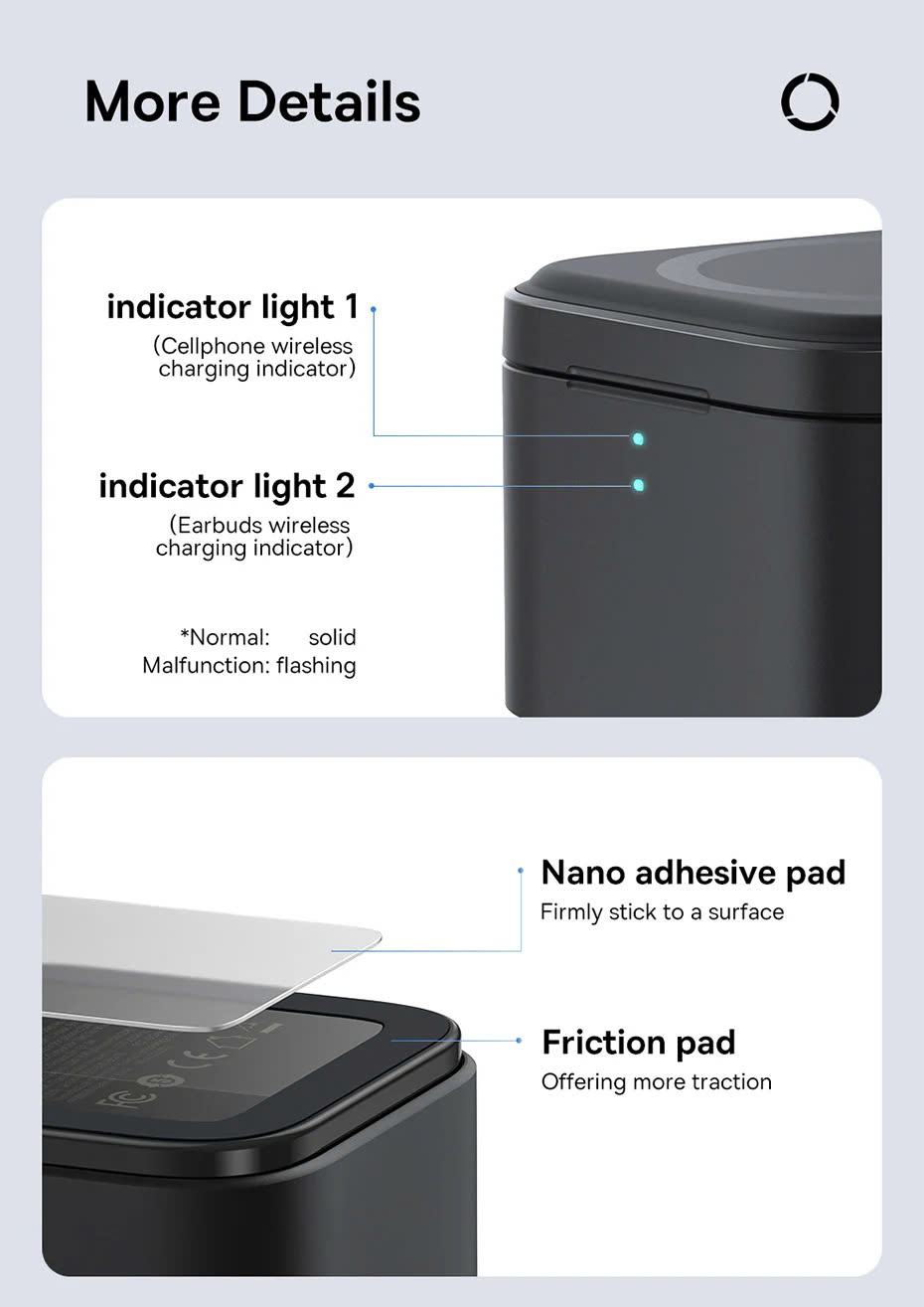 Tương thích với AirPods và các tai nghe không dây chuẩn Qi.